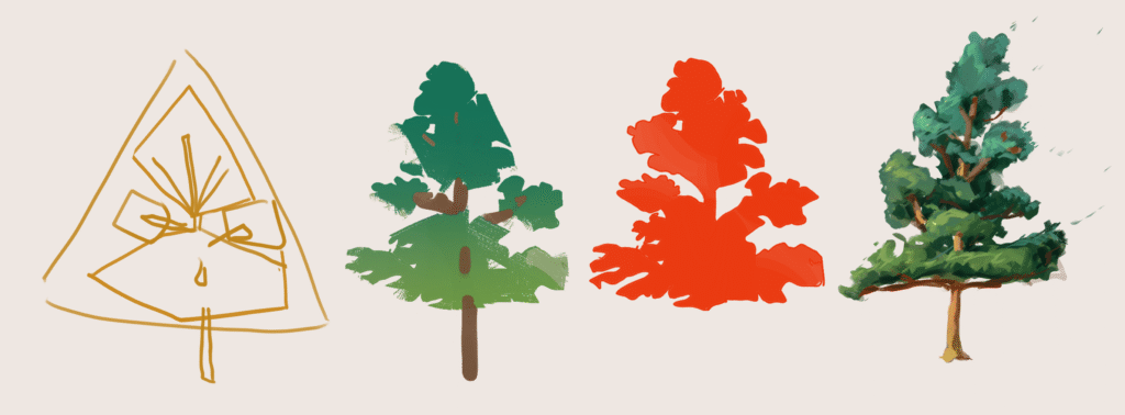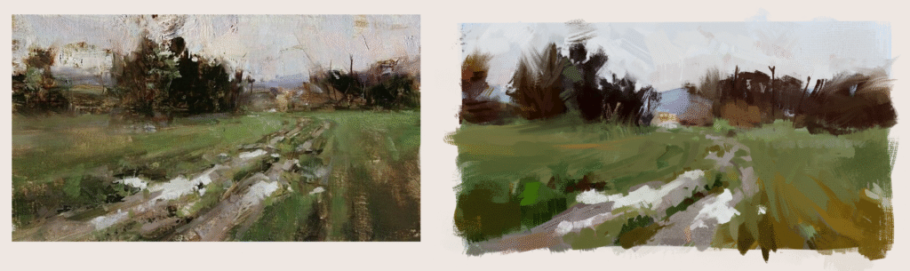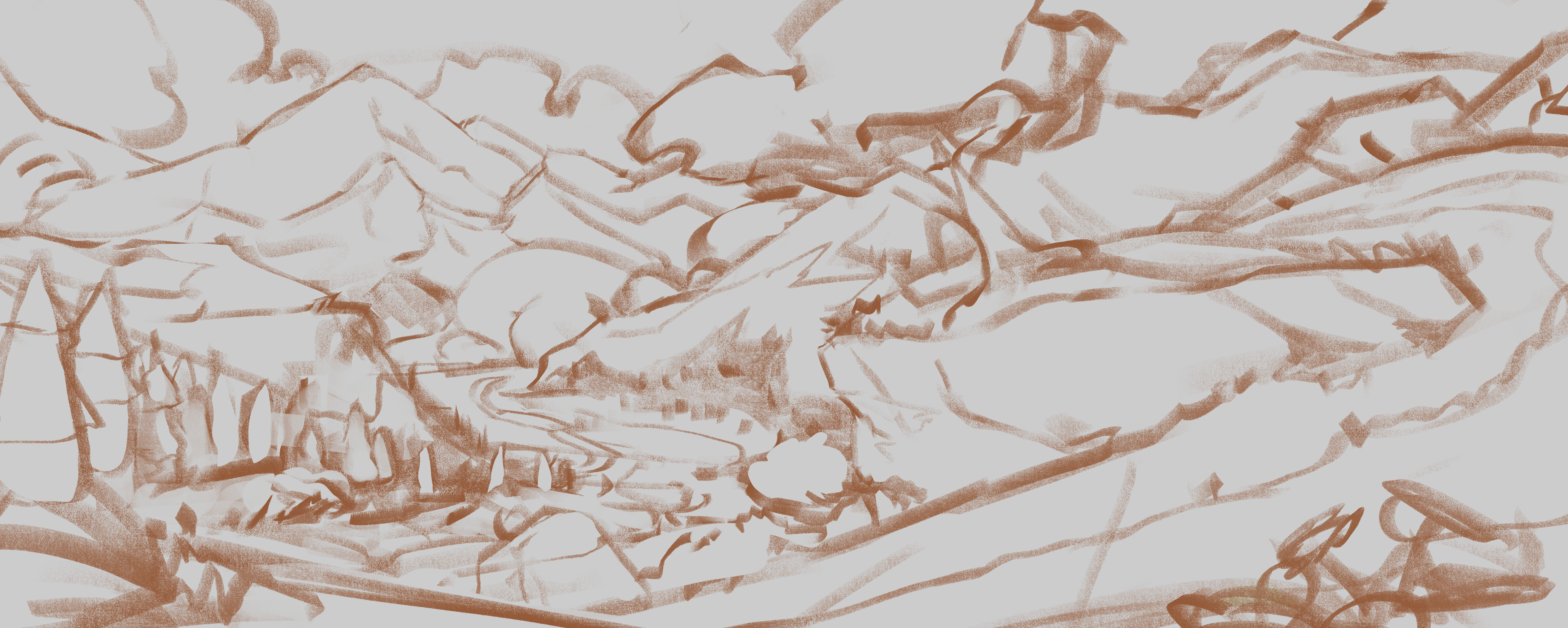 Ex: Define 3 cores, luz, meio tom e sombra. Colocando essas cores no papel com opacidade, eu consigo controlar a quantidade de “pigmento” que coloco no papel. Assim, gerando uma aleatoriedade controlada, gradiente, controles de valores e quantidade te “tinta” Dessa forma eu foco realmente nas escolhas que eu to fazendo com isso fazendo uma “arte mais conciente”