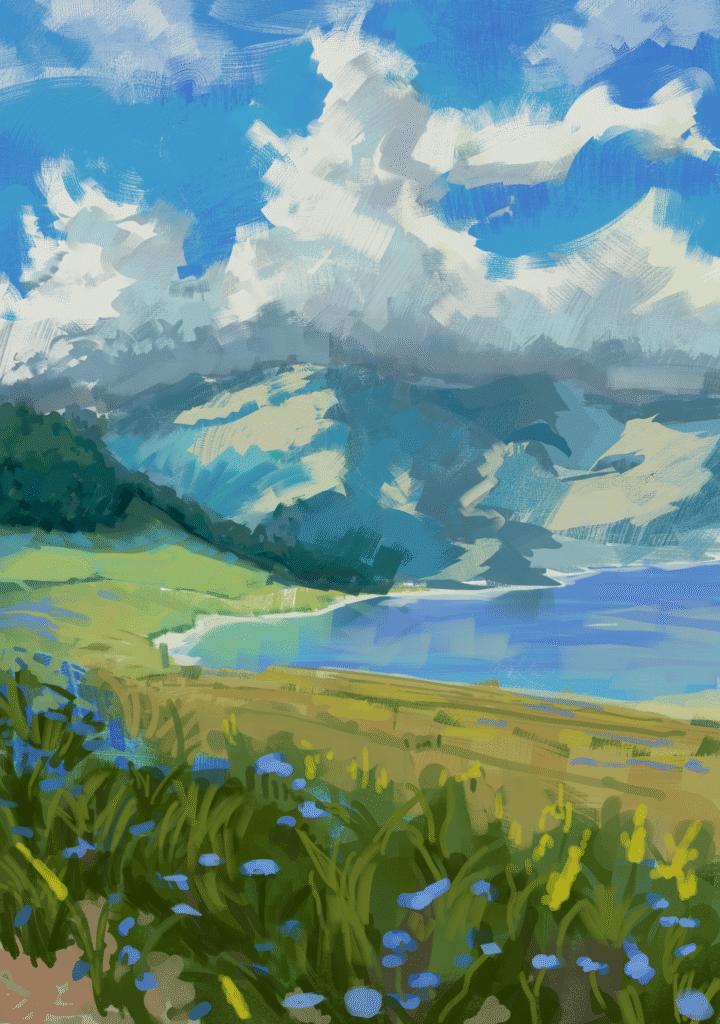 Opacidade pode ser uma ferramente muito poderosa. Se eu “”emulo”” o processo da aquarela, começando com cores decisivas e passando e colocando camadas para complexificar o que eu acha necessário, eu crio algo impressionante.